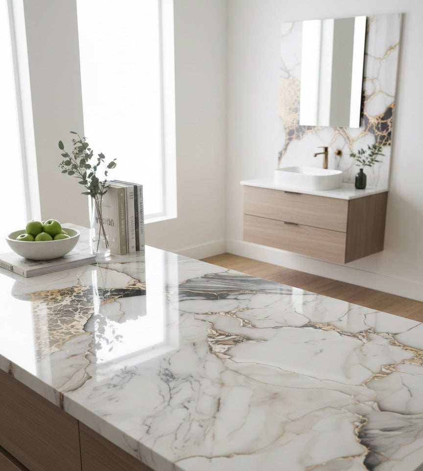 Nouveau | Panneaux Mural UV en PVC, Noir veine dorée, 4x8 pied 3mm